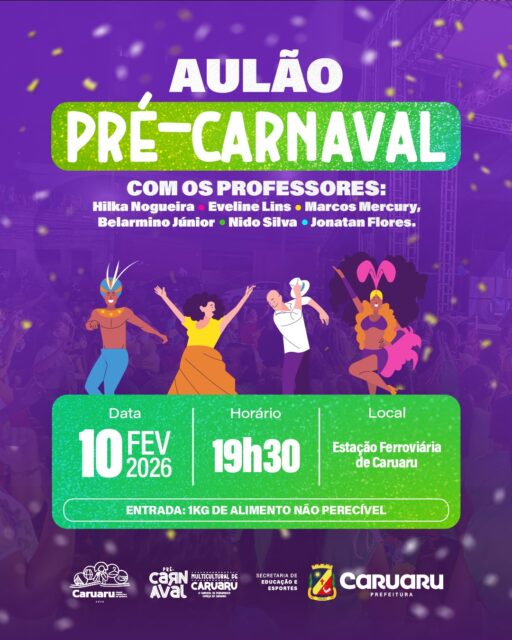 Com essa proposta, a Prefeitura de Caruaru, por meio da Secretaria Executiva de Esportes, realiza, nesta terça-feira (10) o Aulão de Dança Pré-Carnaval, um encontro que une exercício físico e a energia contagiante das músicas carnavalescas. A atividade começa a partir das 19h30, na Estação Ferroviária de Caruaru. A entrada será solidária, mediante a doação de 1kg de alimento não perecível, que será destinado ao Transforma Caruaru.