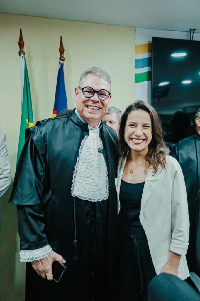 A governadora Raquel Lyra prestigiou, nesta segunda-feira (23), no plenário do Tribunal Regional Eleitoral de Pernambuco (TRE-PE), a solenidade de posse do desembargador Erik Simões como novo vice-presidente e corregedor da Corte. A cerimônia reuniu magistrados, autoridades dos poderes Executivo, Legislativo e Judiciário, além de representantes do sistema de Justiça. A vice-governadora Priscila Krause também acompanhou a solenidade.